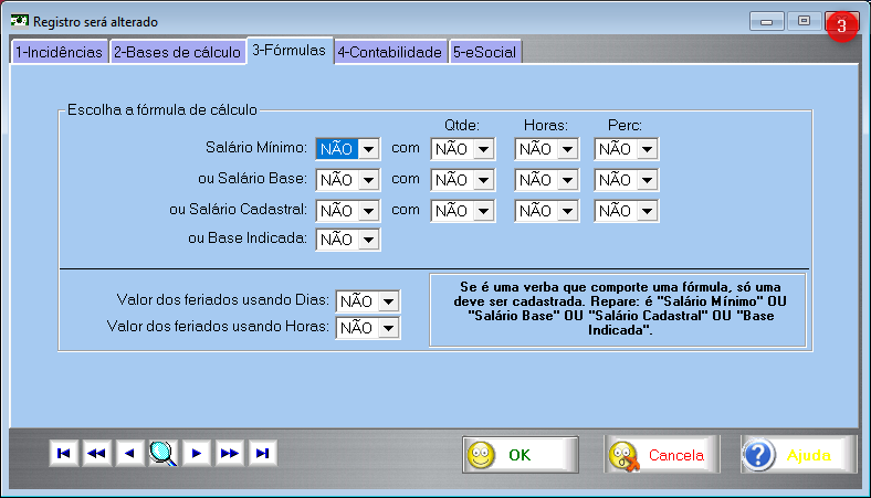 Observação importante ! Se o funcionário contraiu mais de um empréstimo em instituições bancárias diferentes, será necessário criar quantas verbas acima forem necessárias para atender o total de empréstimos. Ex.: certo funcionário contraiu 3 empréstimos (até 9 podem ser feitos), então será necessário criar 3 verbas, todas iguais, apenas com o código da verba diferente, para que os diferentes contratos sejam incluídos no cadastro de empréstimos.